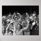 Eine Gruppe von Kindern, die in diesem Spiel jubeln, steht bei einem Baseballspiel. Detroit, Michigan. 1942.