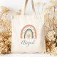 Kinder benennen Boho Rainbow Heart Earth Tones Tragetasche