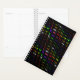 Prähistorischer, psychedelischer Planer in einem farbenfrohen Dinosaurier-Design mit Rex, Triceratops, Pterodactyl, Gallimimus und Diplodocus.
