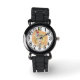 Die silberne Glitzer-Armbanduhr mit einem Cartoon-Mädchen, das ihren Cupcake-Hut und eine Tasse Coco trägt
