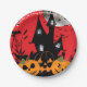 Kinder, die das Halloween-Papiertüten der Stunde e Pappteller