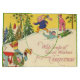 Vintag aussehen Weihnachtskarte von Kindern in farbenfrohen WinterOutfits, die auf einem schneebedeckten Hügel schlendern. Nachricht: Mit vielen guten Wünschen für Ihr Weihnachtsfest