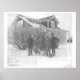 Kinder draußen mit Weihnachtsbaum auf der Pitchfork Ranch bei Meeteetse, Wyoming.