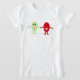 Dieses weiße T-Shirt mit einem niedlichen Cartoon einer lächelnden roten Traube, die Hände mit einem lächelnden grünen Traube, beide Trauben haben glänzende schwarze Augen und rosa Mund. Dieses Design ist auch auf verschiedenen Arten und Farben von T-Shirts für Kinder und auch auf Babykleidung erhältlich.