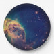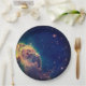 Einwegpapierplatte mit schönem, dunklem, blauem, schwarzem Hintergrund und leuchtenden Sternen unserer Galaxie.