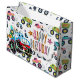 Ein wunderschöner großer Geschenkbeutel mit Cartoon-Großrad-Autos und LKW für Geburtstagsgeschenke