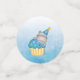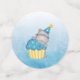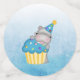 Niedliches Hippo mit blauem Kuchen und einem blauen und gelben Hut aus Party. Coole Konfetti zum Sprinkeln um den Kuchen oder auf den Tisch, um das Thema Ihres Hippo Geburtstags.