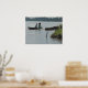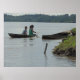 Kinder im Holzboot am Napo-Fluss in Peru Poster