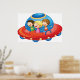 Cartoon-Kinder in einem roten Raumschiff. Dieses Design sieht wirklich effektiv aus auf diesem Poster