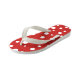Kinder Flip Flops werden in Rot und Weiß mit einem niedlichen Polka-Punkte-Druck angezeigt. Passen Sie dieses Objekt an oder kaufen Sie, wie es ist.