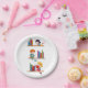 Kinder, die in Regalen sitzen und Bücher lesen. Dieses Design sieht wirklich effektiv aus bei diesen Paper-Tellern
