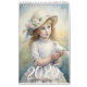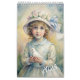 Vintager Kalender mit niedlichen Mädchen und Ostertauben. Kalender 2025