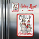 Dieser niedliche Magnet zeichnet sich durch ein bezauberndes Schneepaar in traditionellen Hüten und Schals aus, das mit den Worten 'Chillin' mit meinen Schneemäben mit Heiligenbein und Beeren bestreut ist.