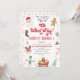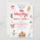 Kinder Oh, was Spaß Weihnachten Themed Geburtstag Einladung Niedlich, oh was Spaß Weihnachten Geburtstagseinladung mit einem roten Retro-Schriftart Stil Rubrik, Schlitten, Weihnachtsmann, Ingwer Brot Mann, Rentier, Schneemann und mehr.