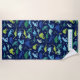 Kinder Personalisiert Dinosaurier Blue Watercolor Beach Handtuch. Fun Dinosaurier Muster in Aquarell blau und grün auf dunkelblauem Hintergrund. www.SamAnnDesigns.com