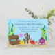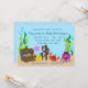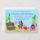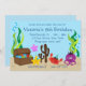 Diese niedliche, individuell gestaltete Geburtstagsfeier am Pool bietet eine Szene unter dem Meer mit einer Schatztruhe voller Geschenke, einem Oktopus und einer Krabbe mit Party-Hüten und einem Seestern mit einem Ballon.