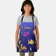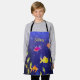 Kids Schürze in kleiner Größe mit komischen Fischen auf tiefblauem Hintergrund. Der Name kann geändert werden. Dank Creative Fabrica für einige der Elemente in der Gestaltung.