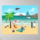 Diese lustige Cartoon-Illustration wäre eine schöne Ergänzung zu Ihrem Zuhause oder Strandhaus! Das Design bietet eine sehr niedliche Strandlandschaft, in der zwei Kinder mit einem Explosion auf dem Weg zum Ufer segeln, wo ihre Mutter mit ihrem Laptop Sonnenbräune legt. Ein paar Enten spielen in der Nähe, ein Pilot fliegt darüber, und ein Schiff fährt durch den Ozean. Ein Geschenk für ein Kind oder für jeden, der den Strand Lieben!