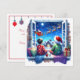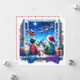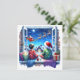 Adorable nostalgische personalisierte Weihnachtskarte. Niedliche Aquarellgrafik von Kindern, die im Fenster sitzen und den Weihnachtsmann und die Rentiere an einem sternigen Heiligabend am Himmel vorbeifliegen sehen.