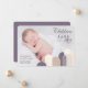 Feiern Sie die Ankunft Ihres wertvollen Segen mit dieser schön gestalteten Geburtsankündigung. Mit dem Foto Ihres Babys verbunden mit dem gefühlvollen Vers "Kinder sind ein Geschenk Gottes; sie sind eine Belohnung von Ihm" (Psalm 127:3) strahlt diese Karte Wärme und Dankbarkeit aus. Das moderne Design präsentiert elegante Bögen in einer beruhigenden lila Palette, ergänzt durch natürliche, neutrale Farbtöne, die zeitlos und einzigartig sind. Personalisieren Sie es mit dem Namen Ihres Babys, den Geburtsdetails und einer liebevollen Nachricht von den Eltern auf der Rückseite. Diese Ankündigung ist der perfekte Weg, um Ihre Freude mit Familie und Freunden zu teilen und sinnvolle Schrift mit zeitgenössischem Design zu verbinden.