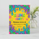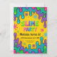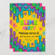 Hell und lustig schlank Geburtstagseinladung mit tropfendem schlankem Design und kühnen Farben. Ideal für Kinder jeden Alters. Editierbarer Text, großartig für ein chaotisches, farbenfrohes Party! Passen Sie die Angaben zu Name, Datum und Party Ihres Kindes an. Spaß und ein einzigartiges Party für Kinder laden ein.