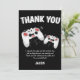 Schicken Sie Ihren Freunden eine besondere Dankeschön-Karte und danken Sie ihnen dafür, dass sie Ihr Party besucht haben und für ihre Geschenke dankbar sind. Mit zwei Kontrolle-Pads auf schwarzem Hintergrund, mit spielerischem Text, der "DANK YOU" und "Ich genoss den Kuchen und das Geschenk auch, aber mein Lieblingsteil war, dich zu sehen! VIELEN DANK, DASS SIE ZU MEINEM PARTY UND DEM WUNDERSCHÖNEN GESCHENK" UND "IHREN NAMEN. Alle Stile und Hintergrundfarben des Schriftartes können durch Anklicken des entsprechenden Links nach der Personalisierung geändert werden.