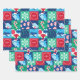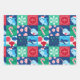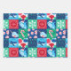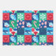Kinder unter dem Meer Weihnachtsgesteck Quilt Muster Wrapping Paper. Narwhal, Hai, Wal unter dem Meeresthema rot, grün und blau Ferienmuster mit Pfefferminzen, Schneeflocken, Bonbons und Ziergegenständen.
