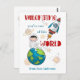 Eine lustige Postkarte im Space Design für den valentinischen Tagesurlaub mit einem Astronauten, der auf der Welt sitzt, einer Raumrakete in der Nähe und einem Hintergrund von Planeten und Sternschichtern. Die Karte hat den Wortlaut - Valentine Sie sind aus dieser Welt in einem extravaganten rot-blauen Schriftart . Ein süßes und niedliches Design für Kinder und Lehrer, um anderen Jungen und Mädchen und Lehrern zum Valentinstag zu geben. Kann personalisiert werden, indem Sie den Namen von unten auf der Karte ändern und bei Bedarf auf der Rückseite Details hinzufügen.