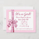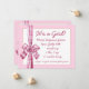 Das ist eine süße Baby-Ankündigung in einem sanften rosa Retro-Stil.