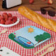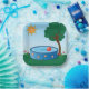 Ein Kinderbecken im Schatten unter einem Baum. Dieses Design wirkt auf diese Paper-Teller sehr effektiv