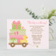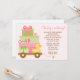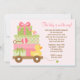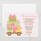 Diese niedliche Babydusche bietet rosa und grüne Babygeschenke und eine Gummiklemme in einem Wagen. Diese moderne und lustige Babydusche-Einladung ist perfekt für jede Mutter.