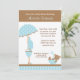 Diese niedliche Blue-Polka-Dot-Baby-Dusche lädt eine schwangere Silhouette mit einem Regenschirm und einem niedlichen Teddybär ein und warte sich auf Ihre individuellen Details einzustellen. Diese moderne und elegante Babydusche ist perfekt für jede Mutter. © Cocoa Studio