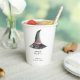 Niedliche und einfache Halloween Baby Dusche personalisierte Papiertassen mit Aquarellhut. Aquarellbild von Kristine Lee. Weitere Informationen finden Sie unter www.kristineleedesigns.com