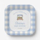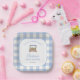 Feiern Sie die Mama-to-be mit unseren niedlichen Tellern zum Thema Babydusche im lokalen Garten. Das Design besticht durch einen niedlichen Aquarellmarkt auf blauem Gingham-Hintergrund. Stilvoll und charmant. Verwenden Sie die Entwurfstools, um den Text anzupassen.