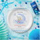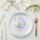 Ein modernes Babyduschdesign mit Aquarellbildern eines Babyelefanten, der auf dem Mond sitzt, mit Leuchtturm, Segelboot, Wolken und Starts. Dieses niedliche Design wird Ihnen eine unterhaltsame Ergänzung zu Ihrer Wassermassage-Babydusche sein.