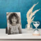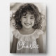 Foto-Plakette mit dem eigenen Foto mit dem Namen oder anderen benutzerdefinierten Text in einem modernen Stil Skript-Schriftart als weißes Overlay.