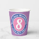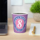 Erinnern Sie sich an einen 8. Geburtstag mit einer Papiertasse, die mit dem Namen des Empfängers, seinem Alter und seinem Geburtsdatum geschmückt ist.
