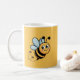 Kinderfreundliches Bienenmaskottchen mit gepunktet Kaffeetasse