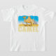 Lächelndes Kamel in der Wüste mit Pyramiden im Hintergrund! Wunderbares und buntes Schulalterstier inspirierte T - Shirts und Tiergeschenke! Säuglings-, Kleinkind- und Kinderkamelgeschenke!