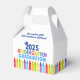 Diese maßgeschneiderte 2025 Kindergarten Graduiertenbox bietet eine coole Gradmütze über bunten Schriften und eine Reihe von Stiften im Regenbogen. Niedlicher Kindergärtner macht Design in lustigen Farben für den letzten Tag der Grundschule. Herzlichen Glückwunsch an unsere freundlichen Absolventen!