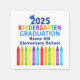 Diese niedlichen Servietten der Kindergartenabschlussfeier 2025 verfügen über eine coole Gradmütze über farbenfrohen Schriften und eine Reihe von Stiften im Regenbogen. Spaß Kindergartner Party Dekor in lustigen Farben für den letzten Tag der Grundschule. Herzlichen Glückwunsch an unseren freundlichen Absolvent!