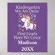 Kindergarten Abschluss Poster. Kindergarten wir sind fertig, Erste Klasse Hier kommen wir. Einhorndesign. Personalisieren Sie dieses niedliche Poster mit ihrem Namen und Jahr. Es gibt viele verschiedene Farben - lila, rosa, blau und grün.
