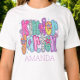 Send her off to Kindergarten in style with this bright and preppy personalized first-day-of-school shirt! Each letter in “KINDERGARTEN” is decked out in cute, colorful patterns—think checks, florals, and stripes—with happy smiley faces, playful stars, and trendy lightning bolts woven in. It’s full of coquette girly charm and perfect for making her feel excited and confident about the big first day.
