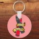 Ein Schlüsselanhänger für Lehrer mit einem hellrosa Hintergrund mit einem Vintagen Tattoo-inspirierten Design von zwei Stiften (rosa und grau), verpackt in einem Banner, der "Kindergartenlehrer" heißt. Oder personalisieren Sie mit Ihrem eigenen Text.