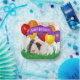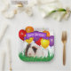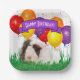 Dieses niedliche, braune und weiße Guinea-Schwein im Gras mit bunten Party-Ballons im Hintergrund hat ein lila Banner, um "Happy Birthday"-Text zu markieren, ist die Funktion auf diesem Papier Platte-Design. Personalisieren Sie das Textfeld, oder klicken Sie auf Anpassen, um eine Schriftart, Farbe und Größe auszuwählen, die Sie möchten.