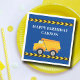 Coole kundenspezifische Konstruktion Müllwagen Geburtstagsparty Papierserviette zum Feiern eines Kindes, das gelbe Baufahrzeuge Lieben. Das Party ist gelb und blau für einen kleinen Jungen, der Pkw und Lkw Liebe. Passen Sie den Namen Ihres Kindes unter dem schwarz-gelben Warnband an.
