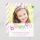 Eine moderne Kindergeburtstag-Party Einladung mit farbenprächtiger Bounce Typografie und personalisiertem Zeitalter und Foto. Klicken Sie auf die Schaltfläche Bearbeiten, um dieses Design anzupassen.