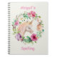 Kinderspiralheft mit hübschem, cremefarbenem Einhorn inmitten eines rosa, lila und cremefarbenen Blumenkranzes. Personalisieren Sie Ihren Namen und Betreff oder jeden anderen Text, den Sie wählen.