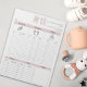 Bleibe organisiert und zusätzlich zu den täglichen Kinderbetreuungsaufgaben mit diesem bezaubernden Babysitter-Tageslog-Notizblock. Dieses Notizblock mit einem charmanten Baby-Wäscheständer-Design ganz oben eignet sich perfekt für die Aufnahme wichtiger Details über einen Kindertag. Das strukturierte Layout beinhaltet Abschnitte zum füttre von Zeiten und Beschreibungen, Windelwechsel (nass und schmutzig), Schlafzeiten, Stimmungen, Spielaktivitäten und zusätzliche Notizen, um sicherzustellen, dass Sie alle Details erfassen Eltern gewollt wissen. Dieses Notizblock wurde speziell für Betreuer und Babysitter konzipiert und bietet viel Platz, um klare und präzise Informationen zu schreiben. Es hilft Ihnen dabei, eine hervorragende Kommunikation mit den Eltern zu pflegen. Seine sanften, neutralen Farbtöne und minimalistischen Icons machen ihn sowohl funktional als auch optisch ansprechend, während der personalisierte Kopf eine berufliche Touch zu Ihren Kinderbetreuungsdiensten hinzufügt. Dieses Notizblock ist auf hochwertigem Papier mit verschneiten Blättern bedruckt und sowohl haltbar als auch einfach zu bedienen. Ideal für Kindermädchen, Babysitter oder Tagesbetreuer, die Vertrauen aufbauen und Familien über die täglichen Routinen ihrer Kleinen informieren möchten.