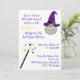 Freuen Sie sich auf eine individuelle Geburtstagseinladung für Kinder mit einem magischen Thema. Ein Cartoon Zauberer Gesicht schmückt die obere rechte Ecke und ein Zauberstab befindet sich in der unteren links Ecke der Einladung. Lila und goldgelber Text ist bereit, für den besonderen Tag Ihres Kindes zu personalisieren. Ideal für Mädchen oder Jungen und für jede Altersgruppe.